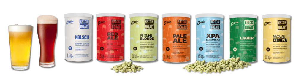 Follow Brick Road and you will soon be brewing better-tasting fresh beer made from the world’s best ingredients. Brick Road Brewing was created from a passion for making the very best fresh beer at home, simply and easily. Starting with the finest cool-climate plump barley, Muntons maltsters mashed the malt to create fresh wort. Then they used their unique process to gently remove the water whilst retaining the full malt flavour. Only available in specialist home brew shops where you can get friendly advice and good ingredients. With several recipes on the label, hop and yeast options, instructions under the lid and even more recipes on this site – you will soon enjoy building your own unique recipes brick by brick.